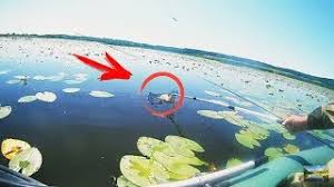Нужно применять снасточку с двумя тройниками. На нее насаживается мертвая рыбка. Грузило должно оказаться в ее пасти. Затем приманку забрасывают в окно между кувшинками. Чем меньше окошко по диаметру, тем лучше.